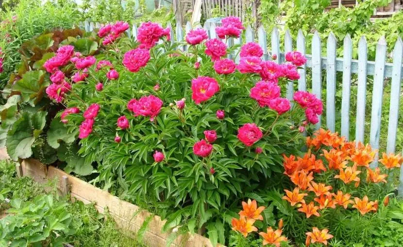 - Растениями-компаньонами могут стать пионы, бархатцы, флоксы; подойдут папоротники, монарда, колокольчик, герань.