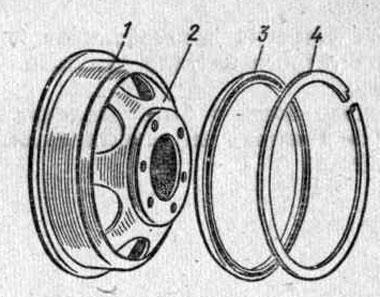 1 — монтажный ручей; 2 — диск колеса; 3,4 — ободы