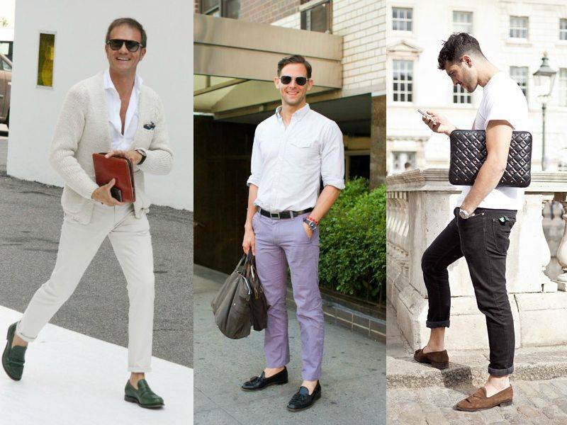 В непринужденной обстановке хорошая пара мужских мокасин может заменить любые ботинки и добавить изюминку в ваш образ. Однако, в отличие от классических мужских туфель, мокасины можно носить без носков. Лоферы можно носить с джинсами или чиносами, но некоторые мужчины могут носить их и с шортами.