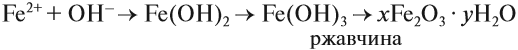 В результате образуется гидроксид железа (II), который, окисляясь, превращается в ржавчину: