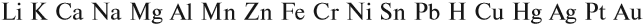 Существует классификация металлов. Выделяют: щелочные металлы (металлы IA группы – Li, Na, K, Rb, Cs, Fr), щелочноземельные (Be, Mg, Ca, Sr, Ba, Ra), переходные (представлены ниже), постпереходные металлы (Al, Ga, In, Sn, TI, Pb, Bi).