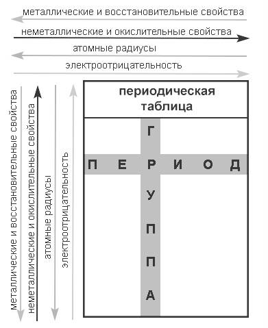 В группе атомный радиус увеличивается, электроотрицательность уменьшается, в периоде – наоборот.