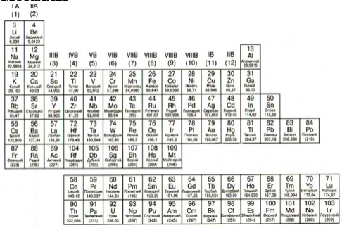 - Короткая – актиноиды и лантаноиды вынесены за границы основного поля, а 4 и все последующие периоды занимают по 2 строчки.