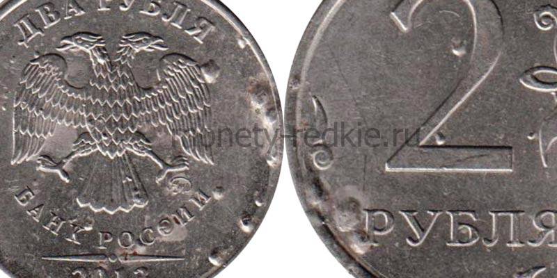 На фото примеры брака “засор штемпеля”, он проявляется впадинами на отчеканенном денежном знаке. Стоит обычно не более 500 руб.