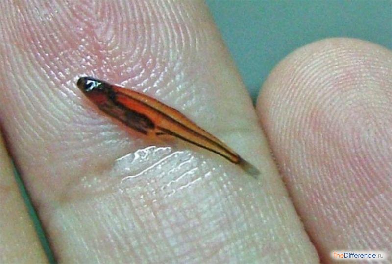 Если рассматривать общие отличия морских рыб от речных, невзирая на таксономию, то первое, что бросается в глаза, – разница в размерах. Среднестатистическая морская рыба намного крупнее своего пресноводного сородича. Кстати, самой крупной рыбой является морской обитатель – китовая акула, достигающая в длину двадцати метров, а самая маленькая рыба, как нетрудно догадаться, – пресноводная. На латыни ее зовут Paedocypris progenetica (она обитает в торфяных болотах), а русского имени у нее нет, ведь водится эта рыба в Индонезии. Взрослые самки данного вида достигают в длину всего 7,9 мм. Впрочем, однозначной победа в споре «самых маленьких» все же не будет, поскольку панамская фотокорина, другой претендент на это звание, имеет почти такие же размеры, и Книга рекордов Гиннесса указывает на оба вида как на конкурентов, не отдавая никому первенства.