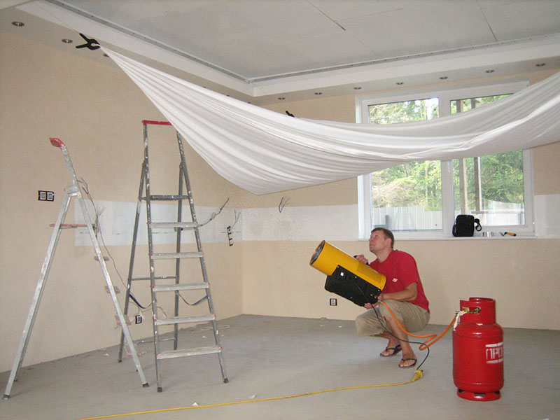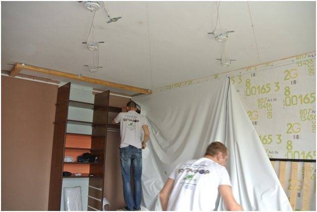 - Гипсокартон легко переносит температурные колебания, а вот ткань и пленка могут деформироваться.