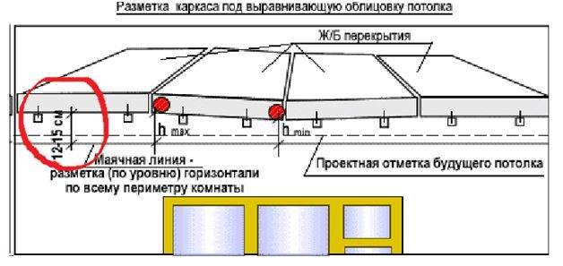 Главный каркас решетчатый, монтируется с помощью подвесов, прикрепленных к потолку или стене. После монтажа каркаса приступают к присоединению элементов облицовки, которые должны быть одинаковой формы и размера с панелями потолка.