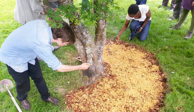 вносят в тяжелую глинистую почву в качестве рыхлящего материала. В опилки добавляют минеральные удобрения: на 1 ведро 30 г мочевины или 70 г сульфата аммония, 20 г суперфосфата, 10 г калийной соли и 120-150 г молотого мела или гашеной извести. После перемешивания опилки с удобрениями вносят в почву из расчета 3-4 ведра на 1 кв.м или в компост слоем 10-15 см.