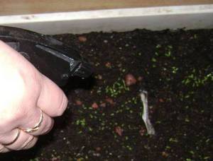 Открытые растения, достигнувшие в диаметре пяти-шести сантиметров, периодически орошают из пульверизатора – не реже одного раза в неделю, чтобы не допустить пересыхания всходов.