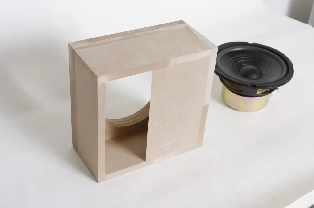 Закрытый корпус представляет собой ящик, обычно изготовленный из МДФ. Его размеры зависят от мощности громкоговорителя. Ящик не имеет отверстий, и вся звуковая волна излучается диффузором.Это самая простая конструкция, так как при расчёте используется только одна характеристика – объём. Заполнение корпуса пассивного сабвуфера звукопоглощающим материалом позволяет «увеличить» его объём на 15-20%. Основным недостатком акустической системы типа «Закрытый ящик», является самый низкий КПД среди всех модификаций.