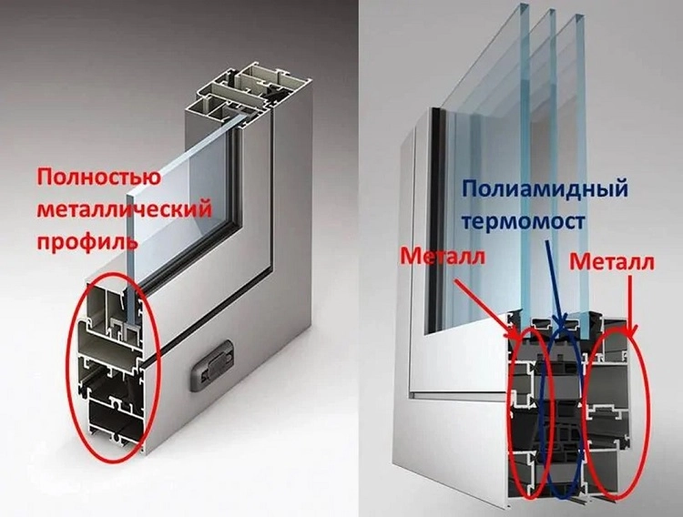 | Стоимость | Средняя | Обычные «холодные» блоки на порядок дешевле пластиковых аналогов. Специальные системы с терморазрывом гораздо дороже, чем пластиковые. |