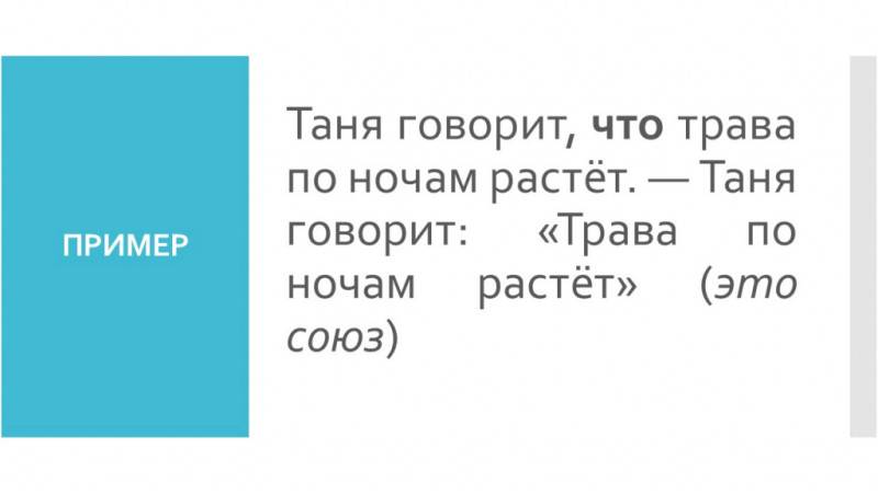 - Союз не входит в состав членов придаточного предложения, а союзное слово заключает в себе признаки главного либо второстепенного члена. Определяется это довольно просто: к союзному слову свободно задаётся вопрос, из которого видно, каким членом предложения оно является. Для примера: «Вера знает, что брат не приедет» (союз) или «Я уже решила, что подарить ему в день рождения» — подарить что? – что выполняет здесь функцию дополнения.
