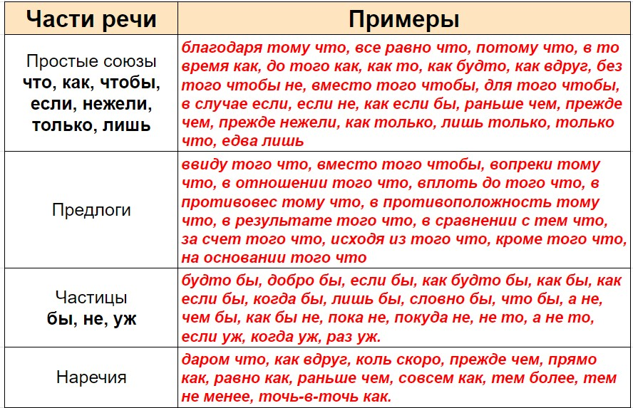 И вот, подчиняясь языковым законам, слова из разряда самостоятельных частей речи стали переходить в категорию служебных, постепенно превращаясь в подчинительные союзы. То есть такие союзы являются производными – произошедшими от других частей речи, в основном от местоимений и наречий.