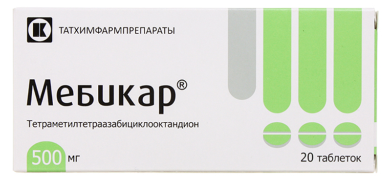 Мебикар – психостимулирующий препарат на основе тетраметилтетраазабициклооктандиона. Он имеет умеренную транквилизирующую активность, поэтому назначается для устранения беспокойства, тревожности, чувства страха, а также излишней раздражительности. Часто такое средство применяется для лечения детской гиперактивности. Еще одно показание – комплексная терапия табачной зависимости (как средство, снимающее синдром раздражительности при отказе от курения).