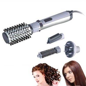 - Диффузор — предназначен для придания объема и дополнительно оказывает приятный и полезный массаж кожи головы. Выглядит как большая круглая щетка с резиновыми отростками;