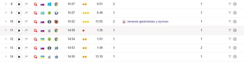 Если желаете ознакомиться со статистикой по отдельным визитам, необходимо зайти в раздел «Вебвизор», в котором есть пункт «Номер визита».