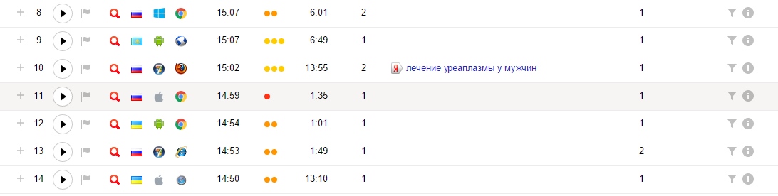 Если желаете ознакомиться со статистикой по отдельным визитам, необходимо зайти в раздел «Вебвизор», в котором есть пункт «Номер визита».