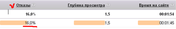 Если человек зашел на страницу и быстро ушел, пробыв на ней не более 15 секунд, и не вернулся за отчетный период, то это и есть «отказ».