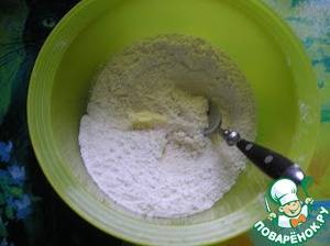 В огнеупорной мисочке смешать 1,5 стакана муки ( я отнимаю от этой порции 1 ст. л. пшеничной муки, а взамен кладу 1 ст. л. ржаной цельносмолотой),