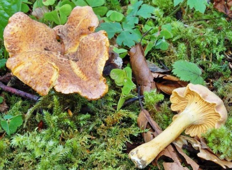 Бархатистая. Это один из редких видов лисичек. У молодых грибов шляпка более выпуклая, но чем старше, тем она становится более воронковидной. Гриб пахнет приятно, но на вкус достаточно кислый.