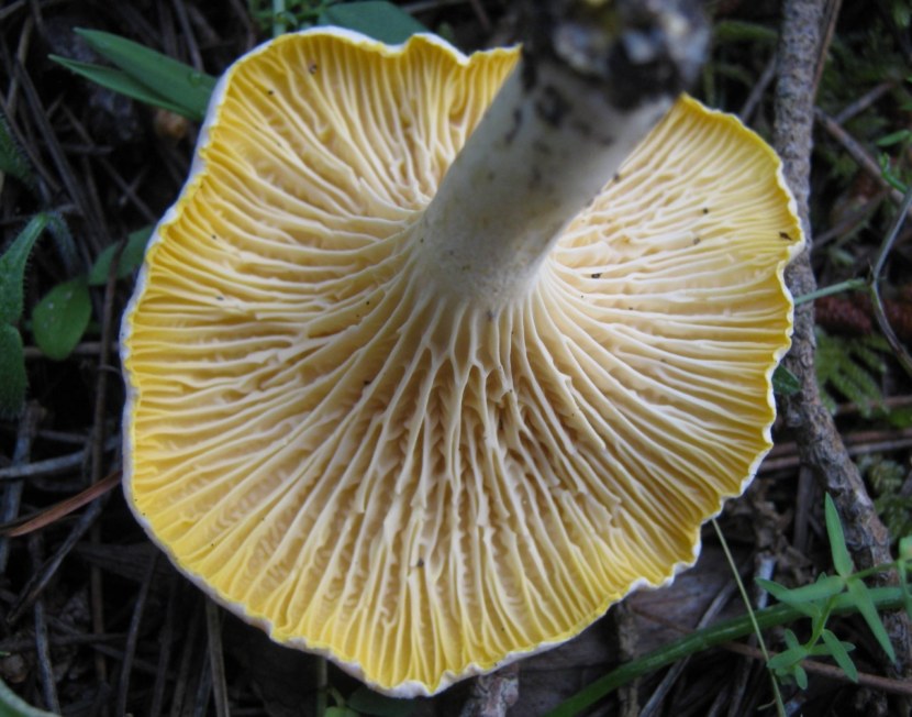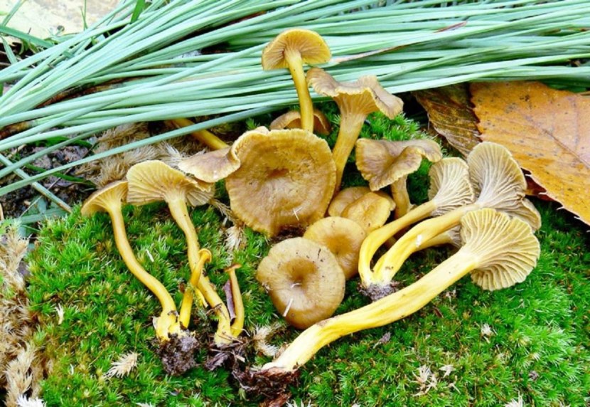 Желтеющая. Её верх представлен желтоватым оттенком, а низ оранжевый. Мякоть имеет бежевый цвет, но без запаха и аромата. Зачастую желтеющие лисички растут в хвойном лесе, на влажной почве, а собирать их можно до конца летнего сезона.