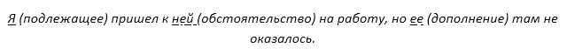 | Начальная форма — именительный падеж, единственное число. Постоянные признаки: разряд (личное, возвратное, вопросительное, относительное, неопределённое, отрицательное, притяжательное, указательное, определительное), лицо (у личных местоимений). Непостоянные признаки: падеж, число (если есть), род (если есть). | Подлежащее, определение, дополнение, обстоятельство. |