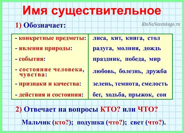 Имя существительное – самостоятельная часть речи, которая отвечает на вопросы «Что?» и «Кто?».