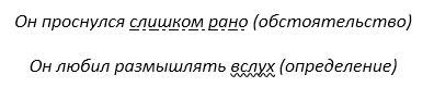 - Единство суммарного смысла, как, например, признак признака у наречия.
