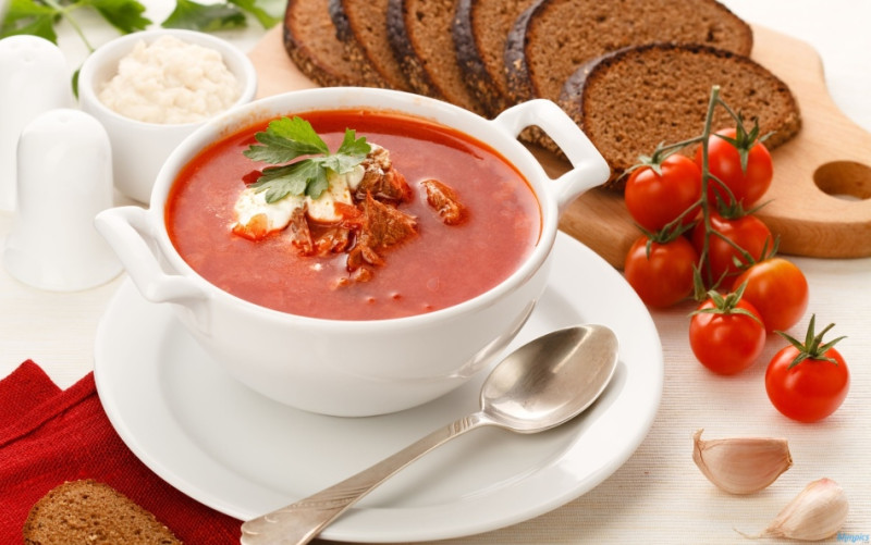 Ну и какой же борщ обходится без пампушек, приготовленных из дрожжевого теста и политых чесночным соусом? Просто пальчики оближешь.
