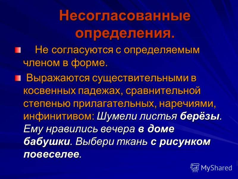 Как отмечалось выше, большую сложность у школьников вызывают согласованные и несогласованные определения