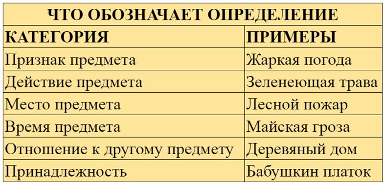 Информация, касаемая способов выражения определений, представлена подробно и комплексно в таблице ниже: