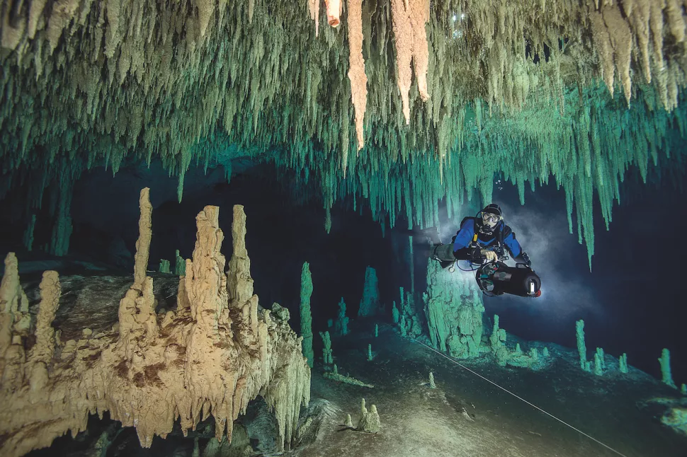 Нохоч-Нах-Чич, Мексика. Эти сталактиты и сталагмиты являются частью самой длинной подводной пещерной системы в мире. (Изображение предоставлено: Getty)