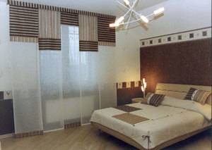 – шторы должны хорошо защищать от света и шума, а также способствовать расслаблению. Материалы: лен, полиэстер, вискоза, тафта. Цвет: спокойные пастельные тона, способствующие расслаблению (зеленый, темно-синий, жемчужный, кремово-серый).