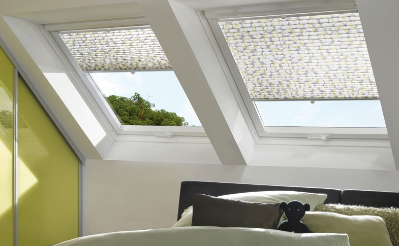 2. Жалюзи плиссе для наклонных окон. С трудом получится найти лучший вариант декорирования окна, если оно расположено на потолке. Разработанные для подобного вида крепеж и специальная система сборки препятствуют провисанию.