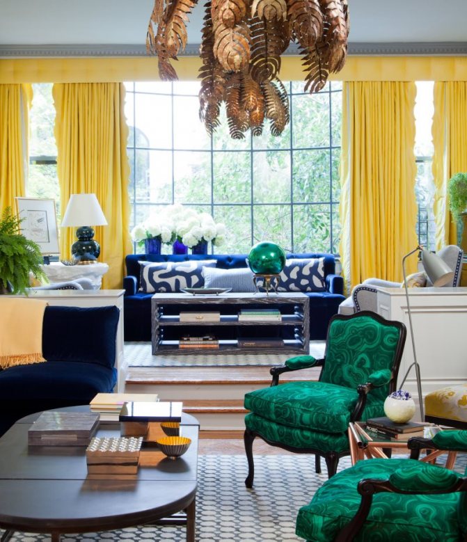 – шторы должны придать интерьеру помещения законченный вид. Материалы: шелк, парча, бархат, атлас, жаккард. Цветовая гамма штор в гостиную определяются интерьером комнаты.