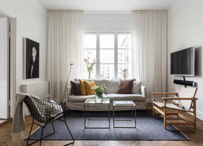 Скандинавский стиль пропитан духом минимализма, поэтому и гардины здесь должны быть из простой полупрозрачной ткани без всякого декора