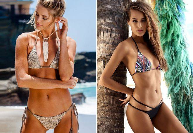 Бикини – типично пляжная разновидность этих моделей, образованная из двух (а не одного) треугольников ткани с завязками на бедрах. В обычной жизни в качестве белья такие модели носить крайне проблематичнотого, стринги буквально оккупировали даже пляжную моду, и из сезона в сезон возвращаются как самая смелая деталь открытых купальников. Собирая пляжный гардероб, стоит уточнить, какая разница между стрингами и бикини. Бикини – типично пляжная разновидность этих моделей, образованная из двух (а не одного) треугольников ткани с завязками на бедрах. В обычной жизни в качестве белья такие модели носить крайне проблематично.
