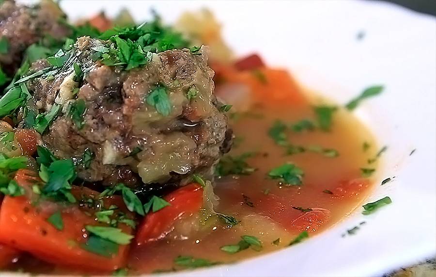 Фрикадельки с овощами. В фарш добавляются нарезанные овощи: морковь, перец, грибы и другие. Это придает блюду свежий вкус и делает его более полезным.