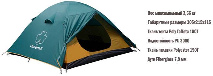 имеется один непромокаемый тент, благодаря чему такие палатки имеют небольшой вес и их просто устанавливать. На тенте может образовываться конденсат, если палатка недостаточно проветрена — это основная проблема!