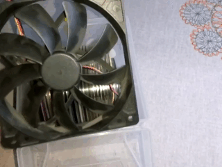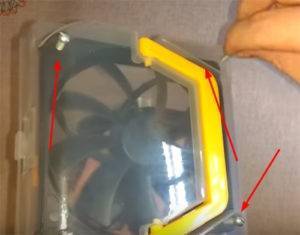 ![]() | Прикручиваем кулер при помощи болтиков, предварительно приклеив гайку к внутренней части кулера. |