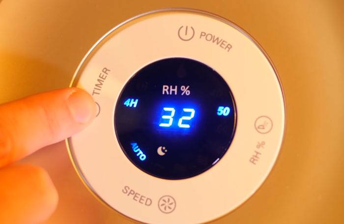 Это два важных датчика, обычно установленных в увлажнителе воздуха. Расскажем о них подробнее. Гигрометр определяет уровень влажности в воздухе: именно благодаря ему на экране постоянно показывается процент влажности. Гигростат реагирует на изменения влажности и регулирует работу прибора: если целевой уровень влаги достигнут, устройство автоматически отключается. Если процент падает, оно снова начинает работать. Выбрать такую модель просто обязательно — ей будет проще пользоваться.