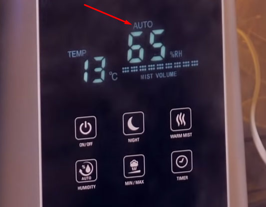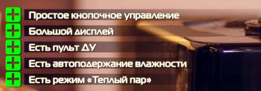 На крышке имеется электронное управление с выставлением автоматического режима, ночного режима, выбора скоростей увлажнения.