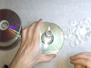 ![]() | Для начала подготовим необходимый материал: алюминиевая трубка диаметром 14 мм, длиной чуть меньше пластикового контейнера, в который будет помещена, сам контейнер, диски, силиконовые или резиновые прокладки, скобы для крепления труб, клей «Момент», куллер компьютера, двигатель от плеера. |