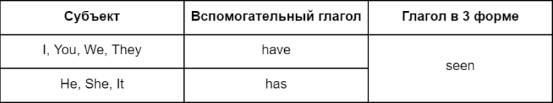 Построение предложения: — Субъект + have/has + глагол в третьей форме (V3) + дополнение.
