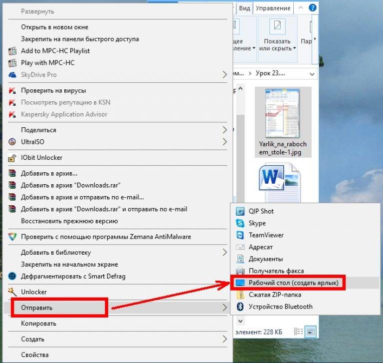 ). И на вашем Рабочем столе появится ярлык этой папки или файла.