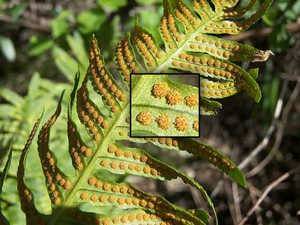Размножение папоротников. На нижней стороне листа (но не каждого) образуются спорангии, расположенные кучками и часто прикрытые покрывальцами или краем пластинки листа. Отдельный спорангий простым глазом увидеть трудно. Его строение идеально приспособлено для разбрасывания спор. По форме он похож на двояковыпуклую линзу. Стенки спорангия состоят из одного слоя клеток. Все они тонкостенные, за исключением клеток, расположенных по гребню (кольцо). У этих клеток утолщены внутренняя и боковые стенки