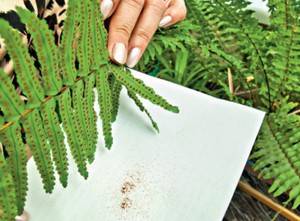 Чтобы вырастить комнатный папоротник потребуются созревшие споры. Они дозревают в спорангиях, как только они побуреют, можно собирать споры. Их срезают с листьев и помещают в бумажный пакетик для дозревания. Пакетик плотно закрывают, поскольку споры могут вылететь из него. Дозревшие споры – это коричневый порошок, который высыпается из спорангий и хорошо заметен на белой бумаге.