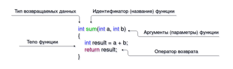 Функции имеют имя, список входных параметров и возвращаемое значение. Имя функции позволяет обращаться к ней из других частей программы. Входные параметры — это значения, передаваемые в функцию при ее вызове, которые могут использоваться внутри функции для выполнения нужных операций. Возвращаемое значение — это результат работы функции, который может быть использован в других частях программы.