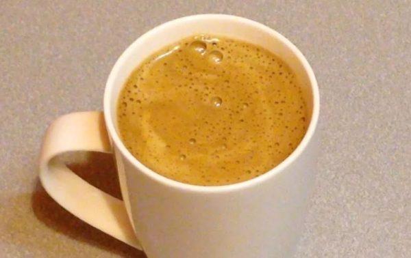 - В кофейную чашку наливают равномерно напиток и посыпают его корицей (примерно 1 г).