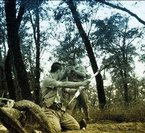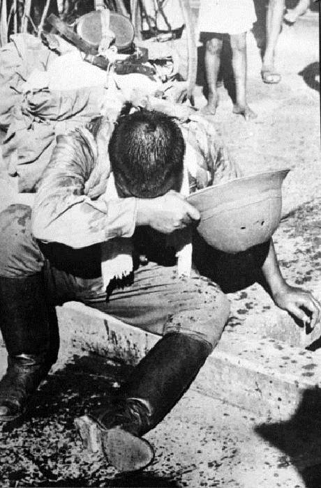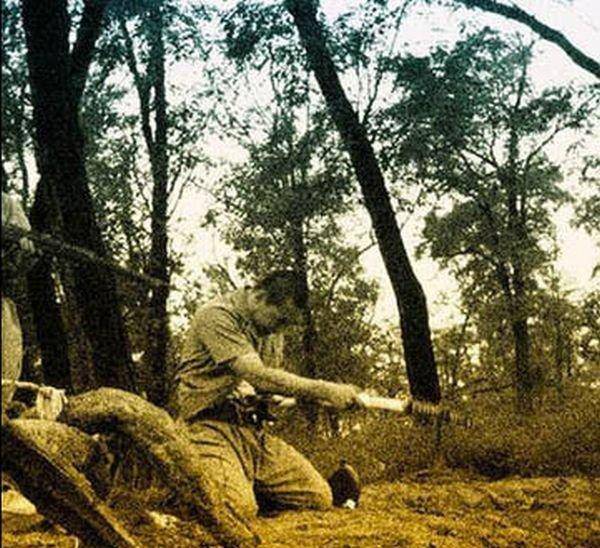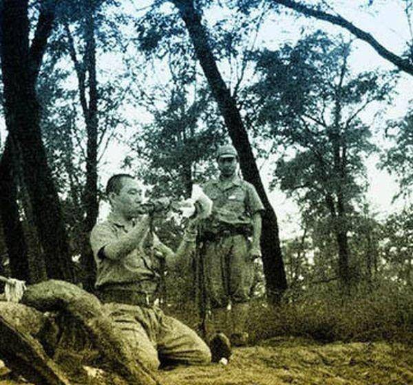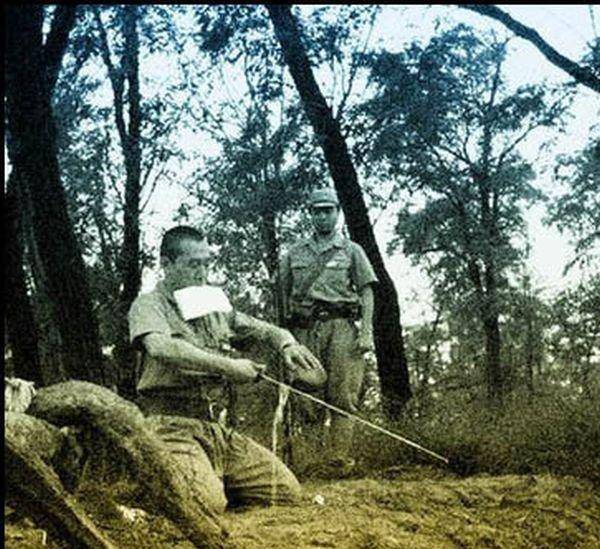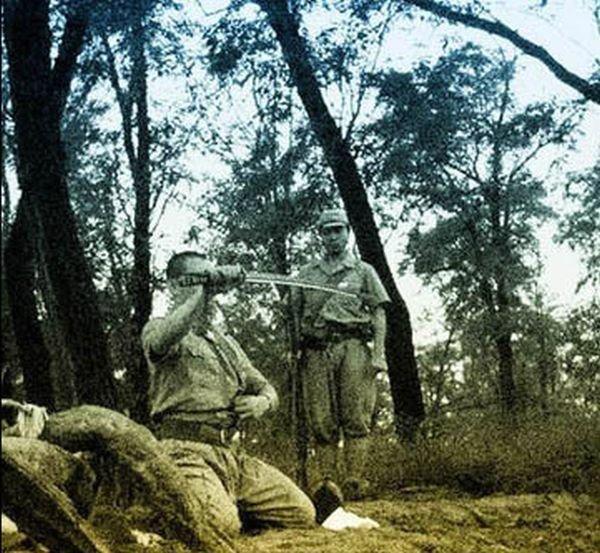 Настоящие фото, как японский офицер Второй Мировой войны делает себе сэппуку.